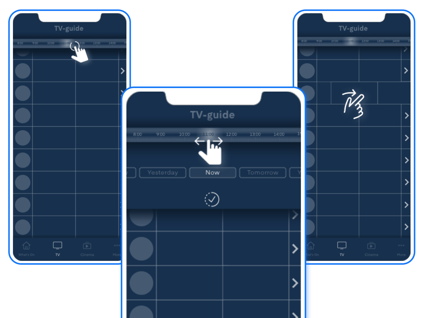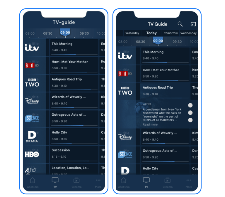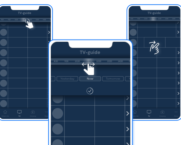 Moreover, users expressed a clear preference for the new UI solution, which allowed them to swipe on the screen to move back and forth in the Electronic Program Guide timeline. This method felt more natural on the phone screen compared to pressing arrows, as seen in the old UI solution. The use of arrows hindered users from quickly accessing channel programs and upcoming programs, forcing them to navigate back to see programming from different channels and open specific channels. Thus, the journey where users can swipe in the timeline was deemed more convenient and intuitive.