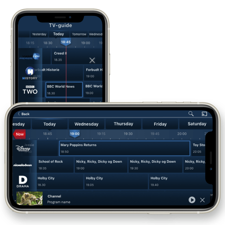 To address the usability challenge identified with timeline navigation on mobile devices, a solution has been implemented in the form of program tiles within the Electronic Program Guide (EPG). These tiles are of unified size, showcasing programs available within the selected time frame, rather than only those that have already started. For example, if a user selects the 6 o'clock mark, they will be shown programs available within that time frame, such as from 5:55 to 6:30. This design choice enables users to read program titles and air times more easily and efficiently, as all titles start at the same place within the timeline, facilitating quicker comprehension and navigation within the EPG interface.
