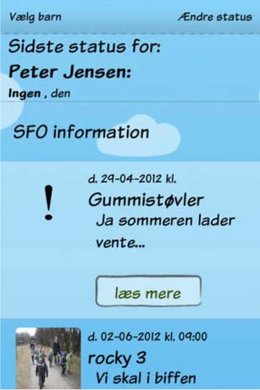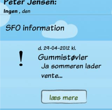 The Childs profile allows to facilitate communication from the SFO, for most important reminders in focus, so the parents can be informed.