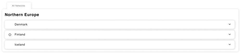 The network list is structured to enhance user comprehension and facilitate informed decision-making. Within this design, regions serve as a primary organisational unit, providing users with a comprehensive overview of the geographical distribution of available networks.