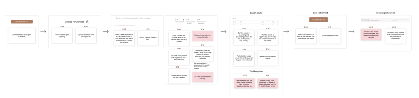 The expansion panel, designed to reveal additional details, was identified as a source of annoyance for users. This element hid the information that was relevant for user to have a quick overview of networks included in the list and their pricing.