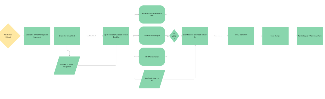 Exploring a UI where user journeys are distinctly separated for editing, adding new networks, and reviewing network lists. It is a strategic approach to enhance user experience and streamline specific tasks. Here's how this separation could be beneficial: