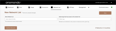3. Name the New Network list and Assign a Tag