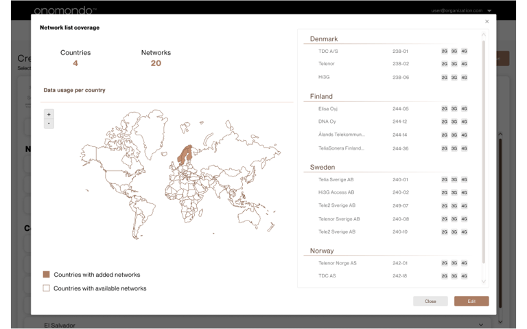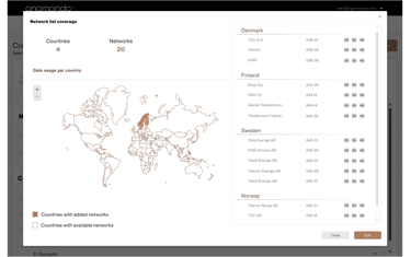 Furthermore, there was exploratored an idea to retain a map overview of selected countries. This feature serves as an informative aid, offering users insights into the coverage information of their Network Lists.