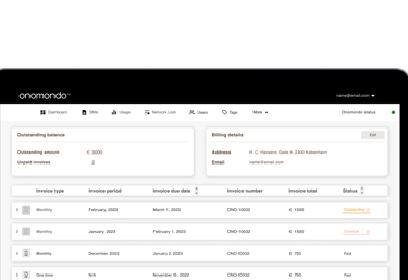 The SIM management portal lacked a dedicated section for handling payments related to Onomondo products and SIM card shipments.