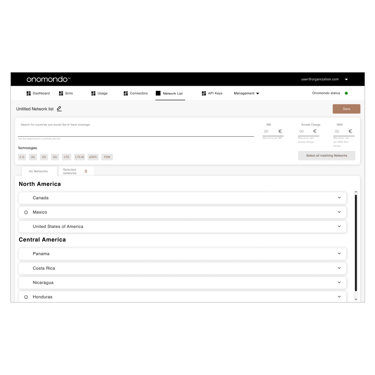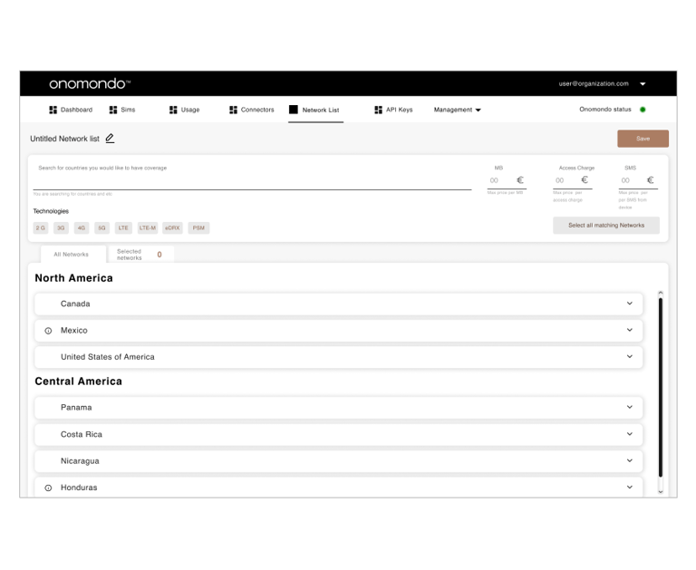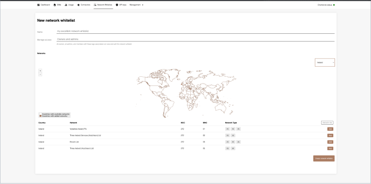 Network marketplace allow the creation of custom coverage maps that suit the business needs of the customers. User creates a list: a group of selected networks that can be associated with SIMs to define which networks they are allowed to register on.