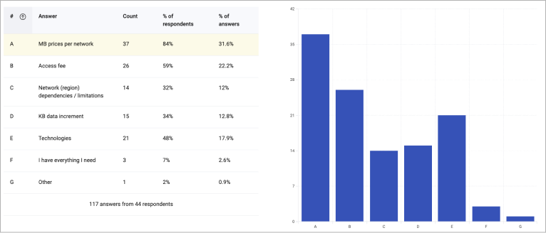 Survey conducted after customer interviews revealed common information gaps, the survey on the Network List page garnered responses from 44 users. Key findings included